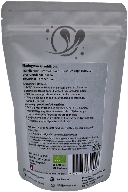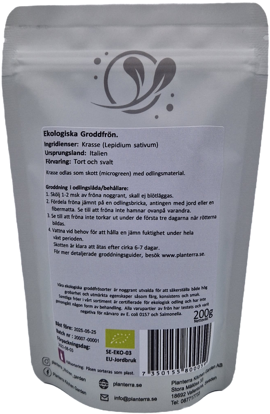 Planterra Kitchen Garden är ett livsmedelsföretag. Alla våra groddfrön testas för E-coli och salmonella, och de kan odlas som mikrogrönt.